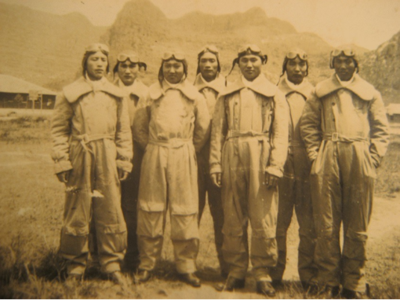 中央航空学校五大队第十七中队队员合影,左三:林恒(王国平 供图)