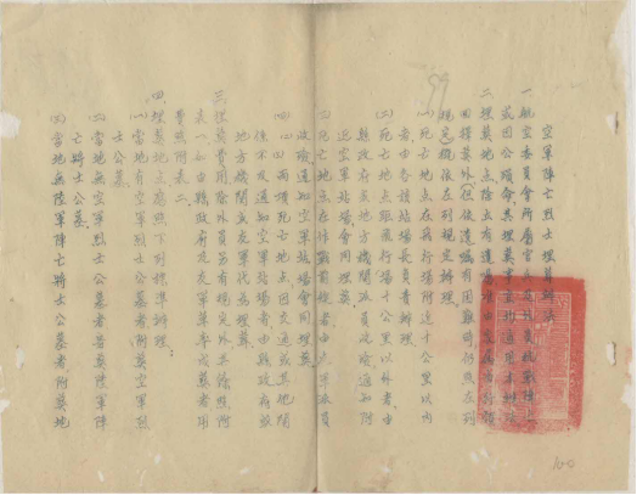 《空军阵亡烈士埋葬办法》(省档案馆提供)