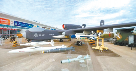 珠海航展上还展出了多种蜂群无人机系统。它们能根据实际情况选择飞行路线,并根据任务内容自主规划组合,形成功能多样、任务复杂的作战集群。“九天”无人机是下一代大型无人空中通用平台,可以释放无人机蜂群,也被称为无人母机,能满足空运、空投、信息支援与对抗、火力打击支援等任务需求。